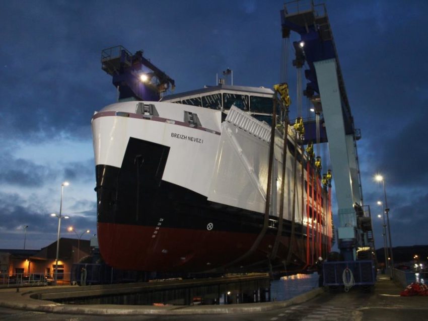 Le nouveau navire roulier, dédié à la desserte de l’île de Groix et construit par PIRIOU, a quitté, ce matin à l’aube, l’aire de Lorient pour être mis à l’eau avant son transit vers le site de Concarneau pour une période d’essais en mer et de finitions intérieures.